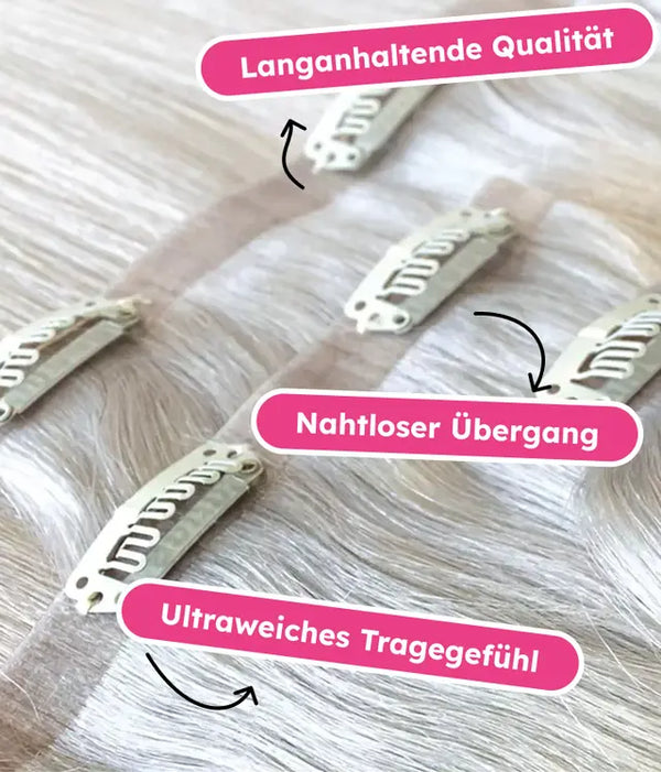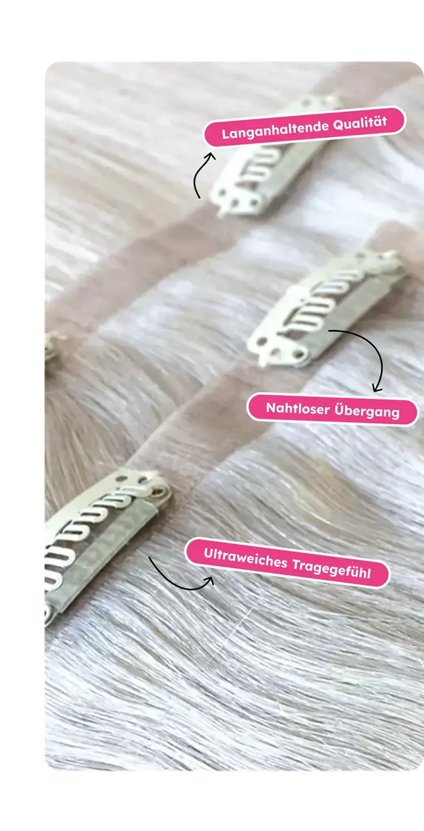 Capelli belli in pochi passaggi? Ciò che sembra un sogno irrealizzabile è la nostra professione da molti anni. Con parrucchini di prima qualità realizzati con capelli veri Rémy al 100%, aiutiamo i nostri clienti a ottenere una chioma fluente da sogno che possono adattare al loro outfit e al loro umore come desiderano. Corti oggi, lunghi domani e il giorno dopo ondulati: la nostra gamma di prodotti ti aiuterà a realizzare i tuoi sogni sui capelli e a sentirti una regina ogni volta che ne avrai voglia! Scopri la nostra vasta selezione di diverse extensions in biondo, castano, nero e molti altri colori.
